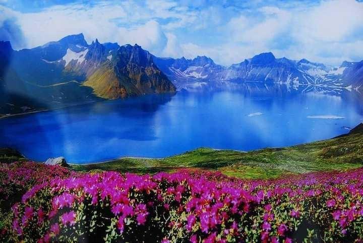 天池湖的水深幽清澈,群峰環(huán)抱的池面五彩斑斕,蔚為壯觀。游覽天池的黃金季節(jié)在盛夏。天池邊上倒映出16座山峰的影子和頭頂上的藍(lán)天,山水相連,水天一色。天池的特別之處和神奇之處在于,它只有出水而沒(méi)有入水,卻千年不絕地流淌著。古人說(shuō)它的水來(lái)自海上,故又稱(chēng)“海眼”。