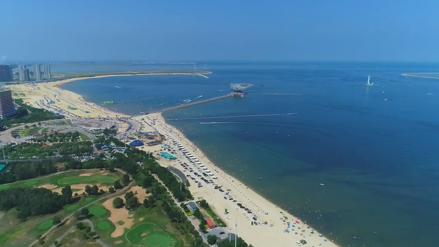白沙灣黃金海岸(國家AAAA級風景旅游區(qū))地處蓋州市歸州辦事處、九壟地辦事處西部,全長14.7公里,距蓋州市區(qū)46公里,距高速公路(熊岳站出口)8公里,濱海公路貫穿園區(qū)。面臨渤海,以海域風光為主,海岸蜿蜒,沙灘細軟,形如新月,景色壯麗。白沙灣是一個在綠樹掩映之下的海濱浴場,人稱“東北第一灘”。
