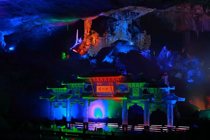 - 景區(qū)特色:以喀斯特地貌和溶洞景觀著稱,被譽(yù)為“全國(guó)諸洞冠”。洞內(nèi)分為七個(gè)洞廳,前四廳為自然景觀,后三廳為人工打造的“神仙世界”游樂(lè)宮,結(jié)合聲、光、電技術(shù),展現(xiàn)奇幻的溶洞世界。