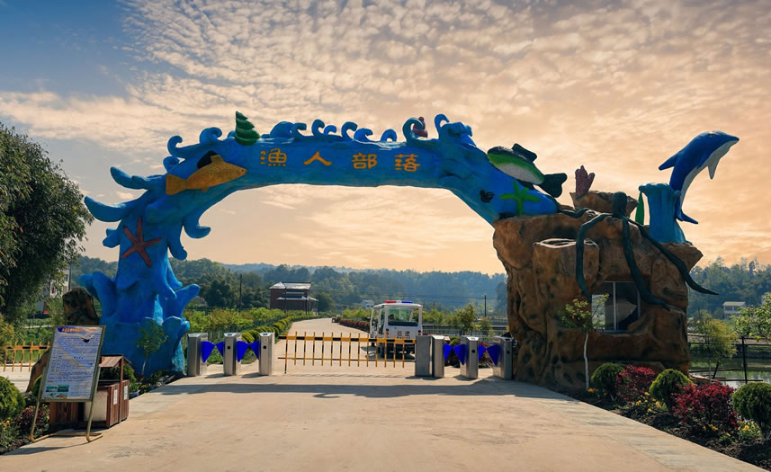 漁人部落風(fēng)情園旅游景區(qū)位于達(dá)州市大竹縣廟壩鎮(zhèn)五桂村,地處大竹、達(dá)州半小時(shí)經(jīng)濟(jì)圈和重慶1小時(shí)經(jīng)濟(jì)圈內(nèi),占地面積約1.5平方公里。景區(qū)集生態(tài)現(xiàn)光、垂釣賽事、科普研學(xué)、親子娛樂、戶外運(yùn)動(dòng)、休閑度假于一體,是一處流水蜿蜒環(huán)繞、飛瀑凌空指重、亭臺(tái)依山而傍、麗景萬紫千紅、美景融合人文、山水變成畫卷的景區(qū),被廣大游客譽(yù)為“川東明珠”“酷玩樂園”“垂釣勝地”。漁人部落以休閑觀光為中心,以魚文化、養(yǎng)生娛樂為主題,建成以觀光農(nóng)業(yè)為基礎(chǔ)、以養(yǎng)老養(yǎng)生為目標(biāo)的魚文化主題突出的鄉(xiāng)村旅游亮點(diǎn)。已建成云中漫步、水上樂園、兒童天地、海洋沙池、彩虹王國、星空滑道、水上游船、白巖棧道、樹王亭、鳳凰觀景臺(tái)、百泉山瀑布及演繹中心舞臺(tái)等十五大游樂區(qū)域的主題親子樂園。