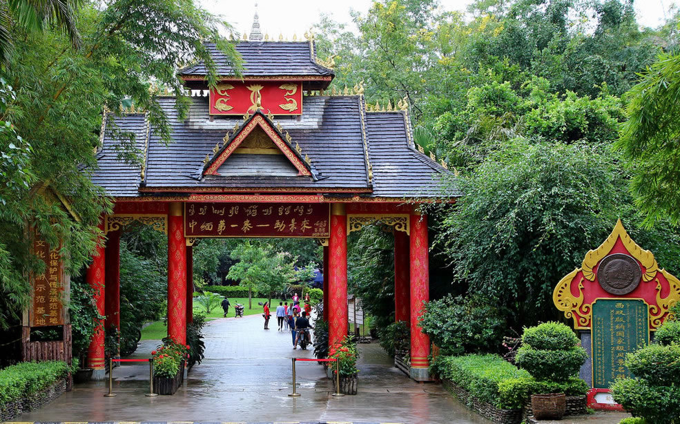 正門(mén)→塔林→佛寺→傣族傳統(tǒng)文化陳列館→干欄式傣樓→229界碑→情侶樹(shù)→傣藥釀酒→染布→古樹(shù)奇觀→夜游(如篝火晚會(huì))→返程。