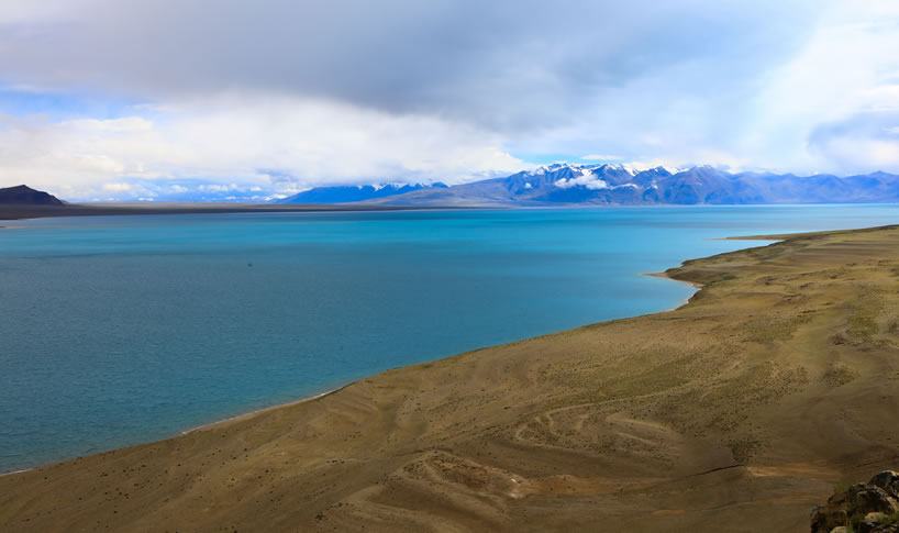 當(dāng)惹雍措,是西藏面積第四大湖,中國(guó)第二深的湖,是西藏最古老的雍仲本教徒崇拜的最大的圣湖。當(dāng)惹雍措為南北走向,形如鞋底的大湖泊,三面環(huán)山。唯南岸達(dá)爾果山東側(cè)有一缺口。達(dá)爾果山一列七峰,山體黝黑,頂覆白雪,形狀酷似7座整齊排列的金字塔。它和當(dāng)惹雍措一起被雍仲本教徒奉為神的圣地。湖邊的玉本寺是一座建于懸崖山洞的寺廟,據(jù)說(shuō)為象雄雍仲本教最古老的寺廟之一。“達(dá)爾果”和“當(dāng)惹”都是古象雄語(yǔ),意為“雪山”和“湖”,它們一個(gè)是神山,一個(gè)是圣湖, 公元五世紀(jì)以前,在世界屋脊的青藏高原,曾經(jīng)存在一個(gè)有自己的語(yǔ)言和文字,文明高度發(fā)達(dá)的古象雄王國(guó)。最輝煌的時(shí)候,象雄王國(guó)的疆域西起今阿里地區(qū)的崗仁波齊(上象雄),橫貫藏北的尼瑪、申扎一帶(中象雄),東昌都丁青一帶(下象雄),疆域極其遼闊,是青藏高原最早的文明中心。而這其中,中象雄的中心就位于達(dá)果雪山和當(dāng)惹雍措的附近。時(shí)日,人們?nèi)匀豢梢栽谶@里看到古象雄國(guó)王宮的遺址。