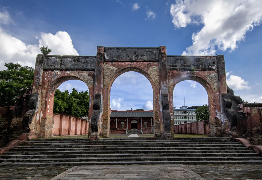 - 特色:古城唯一保留下來(lái)的城門(mén),紅墻綠瓦,仿宮殿樓臺(tái)式建筑,分兩層,底層為甕城,中開(kāi)拱門(mén),雄偉壯觀。