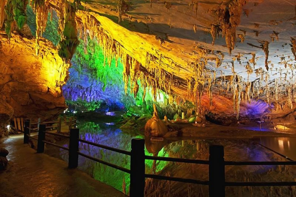- 特色:中英聯(lián)合洞穴考察隊(duì)探測發(fā)現(xiàn),以棕櫚狀石筍、天河倒影、金倫石林等景觀聞名,常年恒溫20℃,適合四季游覽。