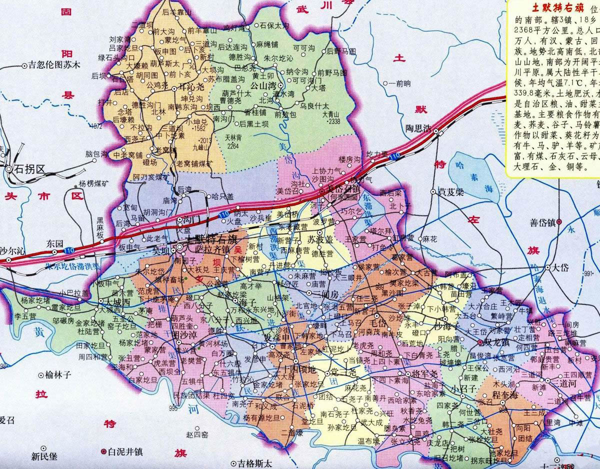 土默特右旗轄5個(gè)鎮(zhèn)、3個(gè)鄉(xiāng)、2個(gè)管委會(huì):