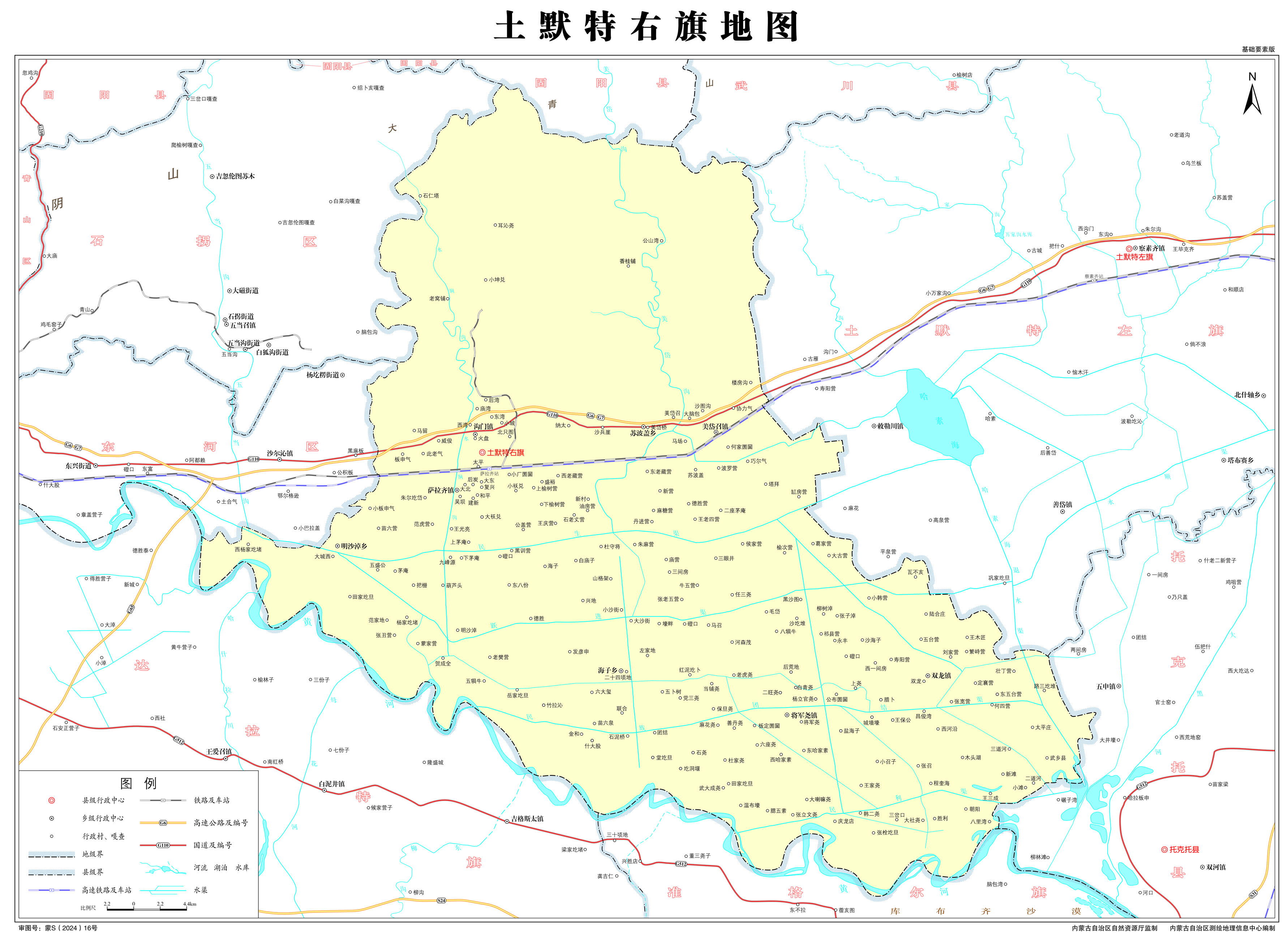 鎮(zhèn):薩拉齊鎮(zhèn)、雙龍鎮(zhèn)、美岱召鎮(zhèn)、溝門鎮(zhèn)、將軍堯鎮(zhèn)