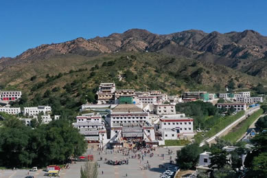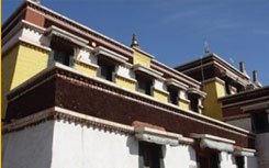 現(xiàn)存六大經(jīng)堂為蘇古沁殿、洞科爾殿、卻伊日殿(顯教經(jīng)堂)、當圪希德殿、阿會殿(密宗經(jīng)堂)、日木倫殿(菩提道學經(jīng)堂)等。蘇古沁殿為全寺集會誦經(jīng)之所。這些殿宇規(guī)模宏大,均為典型的藏式建筑群。殿內(nèi)塑像、壁畫、唐卡(卷軸佛畫)俱全,各殿各有特色,或立高達十米的釋迦牟尼銅像,或供高達九米的黃教始祖宗喀巴銅像,或護法金剛像,或供奉白度母和綠度母塑像等。三座活佛府邸在阿會殿的南面,其中洞科爾活佛府規(guī)模宏大,為第二世活佛熱西尼瑪于乾隆四十九年(公元1784年)所建。左右是接待多倫諾爾匯宗寺甘珠爾瓦呼圖克圖和章嘉國師而建造的兩座府邸。