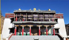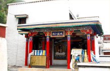 原名努尼殿,是供僧人靜坐休持的殿,用于喇嘛們以逐漸減少飲食,靜坐默誦,力圖不食不語的修行方式去解脫超度眾生靈。后來毀于文革動亂。2003年國家撥款在遺址上恢復并擴建此殿,2005年9月開始對外開放,全殿上下兩層,一樓為佛堂,供有千手千眼觀音像、六世班禪大師、宗喀巴大師像,正中供奉的三世佛為銅鑄鍍金佛像。墻上所繪壁畫是藏傳佛教九大佛寺壁畫。