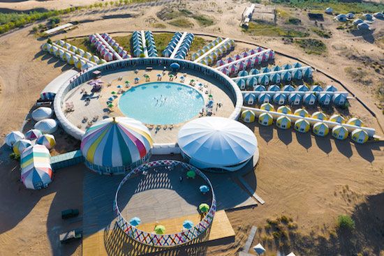 在沙漠中各種深淺的大型泳池里,以各種泳姿釋放自己——在沙丘起伏無際的沙漠里——在沙漠中屬于自己的水的世界里……累了,就躺在清爽的沙灘床上,美美地過上幾個小時,同時可以與同行的人邊吃邊喝邊聊哦,別睡著了,演出一定會有的,悅沙島每天會有十多場不同的演出或比賽,是藝術(shù)的、是體育的……