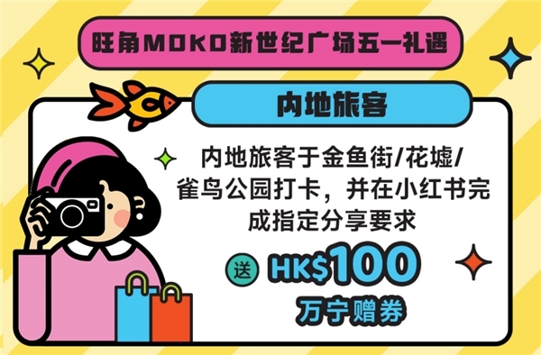 針對游客需求的變化,香港政府推出相關扶持政策,以支持區(qū)域特色打卡發(fā)展。以香港最著名的旅游區(qū)、購物區(qū)和美食區(qū)旺角為例,為了迎接內地游客,香港政府在金魚街、花墟、雀仔公園設置不同打卡裝置。當?shù)氐纳虉鲆餐ㄟ^各種舉措歡迎內地游客。旺角地標MOKO新世紀廣場面向內地游客推出專享優(yōu)惠“日夜打卡繽紛禮”,于以上景點打卡分享到小紅書社交媒體及完成指定要求,可免費領取總值100港幣的萬寧贈券一份,一鍵PO出雙倍快樂。