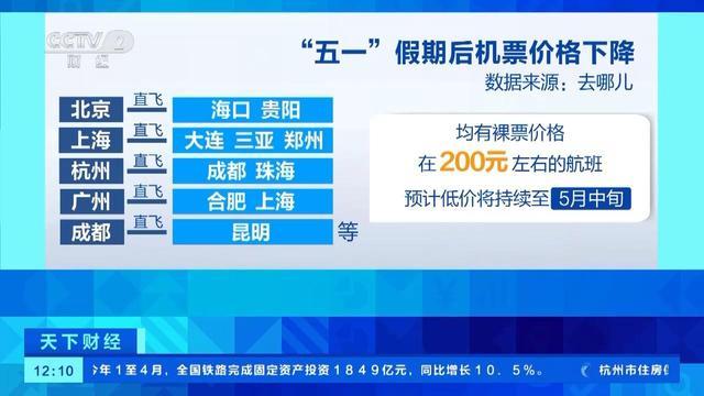 “五一”假期過(guò)后,多條熱門(mén)航線(xiàn)的機(jī)票價(jià)格大幅下降,其中部分低至一折左右。