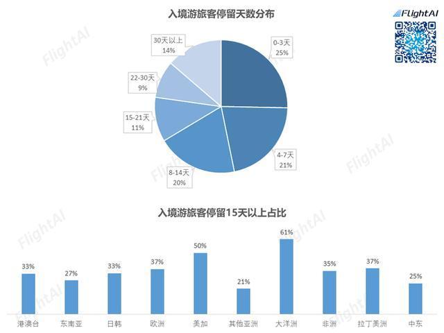 值得一提的是,美國(guó)旅客的入境停留時(shí)間也更久:今年整體入境游旅客中,近一半旅客停留天數(shù)在7天內(nèi),34%的旅客停留天數(shù)在15天以上,其中,美加、大洋洲旅客停留天數(shù)更久,超一半旅客停留15天以上。