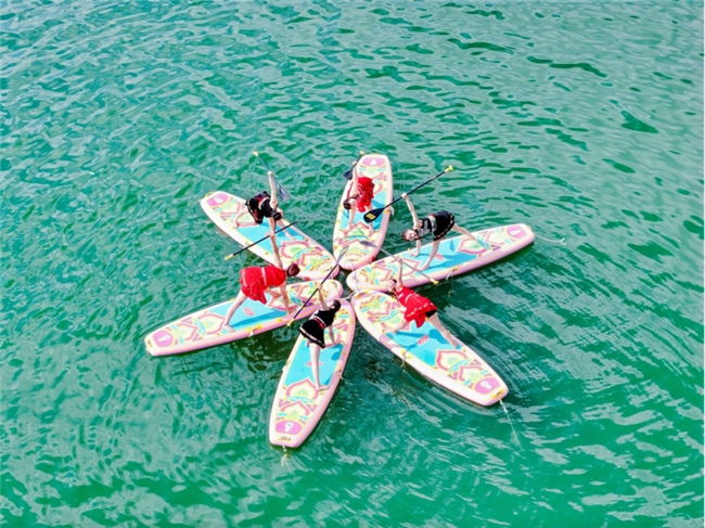 當(dāng)古老的瑜伽遇上時(shí)尚的槳板,當(dāng)柔美的倒影撫摸太鶴湖鱗鱗的水面,太鶴湖上便盛開(kāi)了一朵朵絢麗的花朵。一片湖面便有一塊槳板,一塊槳板便是一片風(fēng)景!槳板瑜伽展示的不僅是時(shí)尚之美,更是健康之美!