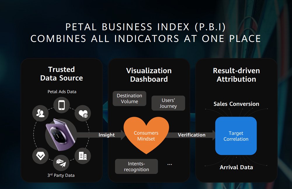 借助華為的技術(shù)和生態(tài)系統(tǒng)合作伙伴,鯨鴻動能還構(gòu)建了Petal Business Index(P.B.I)跨境數(shù)據(jù)驅(qū)動解決方案,以滿足更多企業(yè)組織的需求。作為以數(shù)據(jù)驅(qū)動的營銷工具,P.B.I整合了來自華為設(shè)備和鴻蒙生態(tài)的全方位數(shù)據(jù),并與第三方在線旅游服務(wù)平臺等行業(yè)伙伴合作,共同構(gòu)建了一個可信賴的數(shù)據(jù)模型,并圍繞目的地的關(guān)鍵指標(biāo)建立可視化的儀表板。P.B.I通過建立銷售轉(zhuǎn)化與落地數(shù)據(jù)之間的相關(guān)模型,進(jìn)行有效性分析,輔助營銷策略的制定。