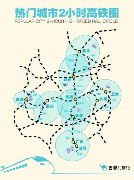 從去哪兒火車票預(yù)約情況來看,2小時高鐵圈內(nèi)仍是旅客出游的主要目的地。北京2小時高鐵圈內(nèi),熱門目的地為天津、濟南、石家莊、秦皇島、大同;上海2小時高鐵圈,熱門目的地為杭州、蘇州、南京、湖州、寧波。
