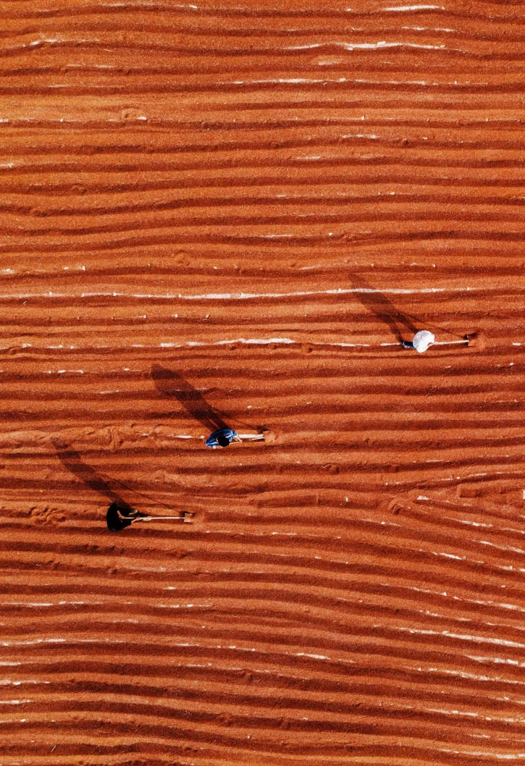 俯瞰紅層大地,猶如畫家恣意揮灑的畫作;虺嗉t或斑斕的色彩,渲染出熱烈的氛圍。由于少有植被保護(hù),紅色的巖層暴露在空氣中,因而經(jīng)常受到風(fēng)化作用的剝蝕,永遠(yuǎn)呈現(xiàn)出新鮮的紅色。荒漠地帶常見的紅柳,耐鹽,耐堿,耐干旱,根系可達(dá)地下30多米,給荒涼點染出生命的色彩。