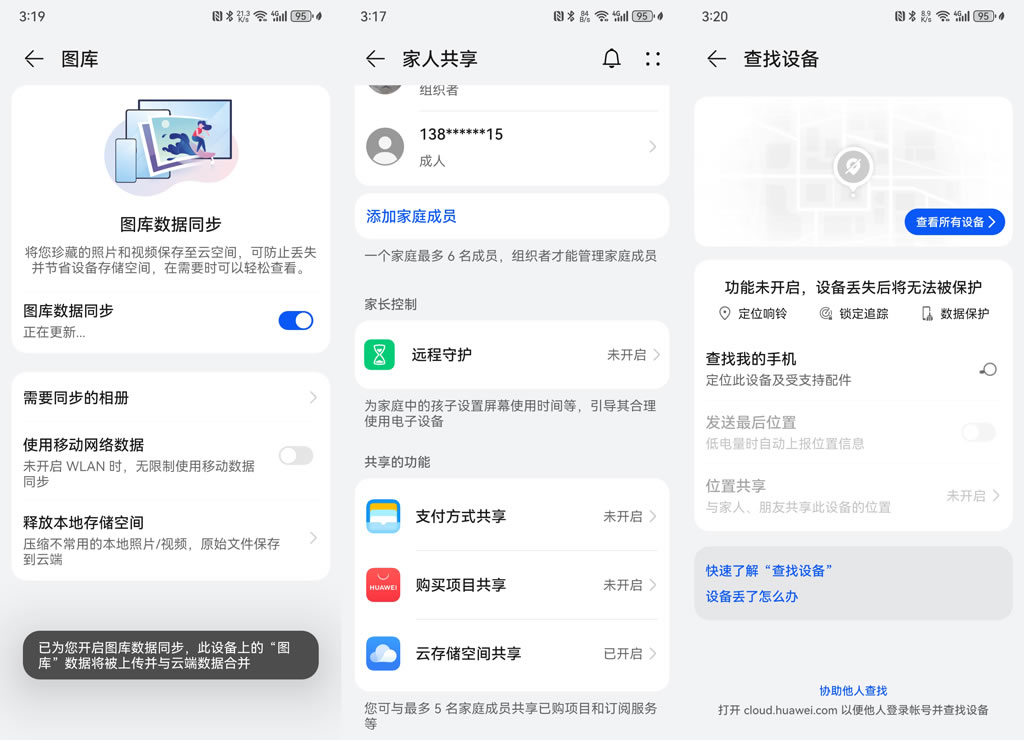 如果實在找不回手機,也不用擔心旅途中拍攝的照片和視頻會丟失。因為只要開啟了華為云空間的“圖庫數(shù)據(jù)同步”功能,手機里的照片和視頻就會自動上傳到云端,只要通過華為賬號就能它們找回來。