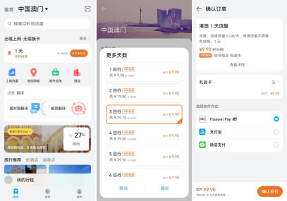 華為天際通無(wú)需更換SIM卡,可一鍵享受全球100+國(guó)家及地區(qū)的網(wǎng)絡(luò)直連服務(wù),并在國(guó)慶期間推出了9.9元包天的流量套餐,即使長(zhǎng)時(shí)間境外游,也可以選擇3天或7天的流量套餐,滿足各種出行需求。港澳活動(dòng)套餐每天最高提升至6GB,讓你上網(wǎng)流量不受限。