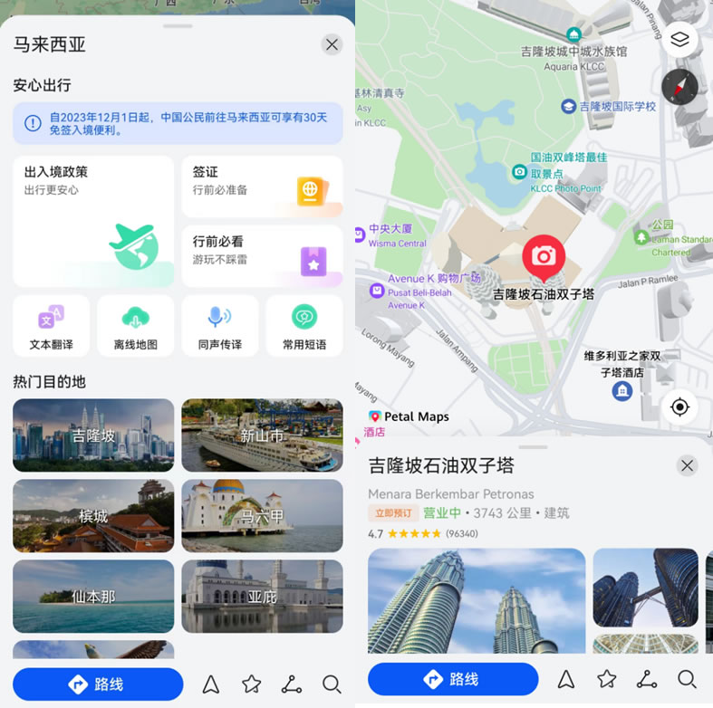 不用怕!Petal  Maps是更適合中國寶寶的導(dǎo)航。它不僅原生默認(rèn)支持中文界面和語言導(dǎo)航,還能提供覆蓋全球 160+ 國家和地區(qū)的詳細(xì)地圖數(shù)據(jù),豐富的地理位置信息和精準(zhǔn)的路線規(guī)劃,能帶你輕松抵達(dá)目的地,發(fā)現(xiàn)隱藏的景點(diǎn)和美食。