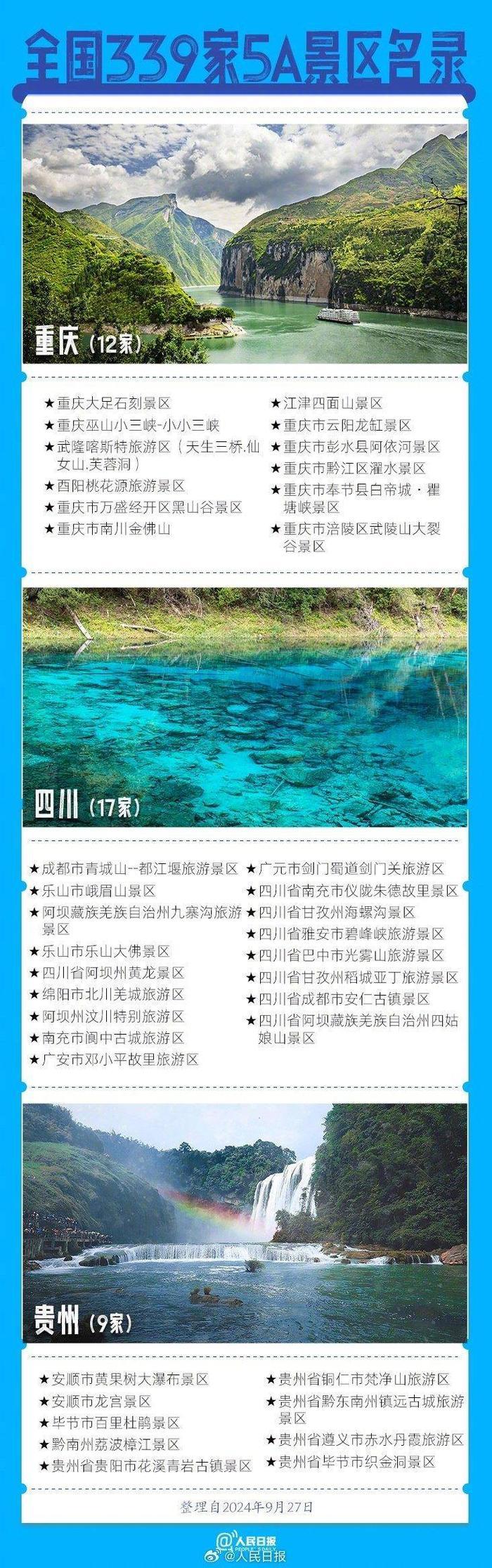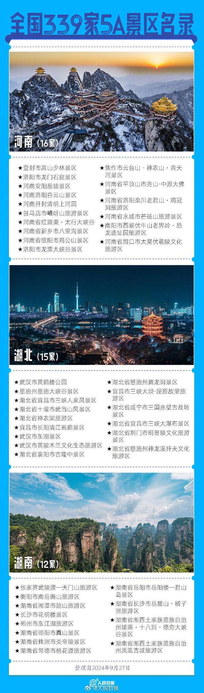 還有1天國慶。截至目前,全國共有339家5A景區(qū)。收好這份5A景區(qū)全名單,這個假期,你想去哪玩?