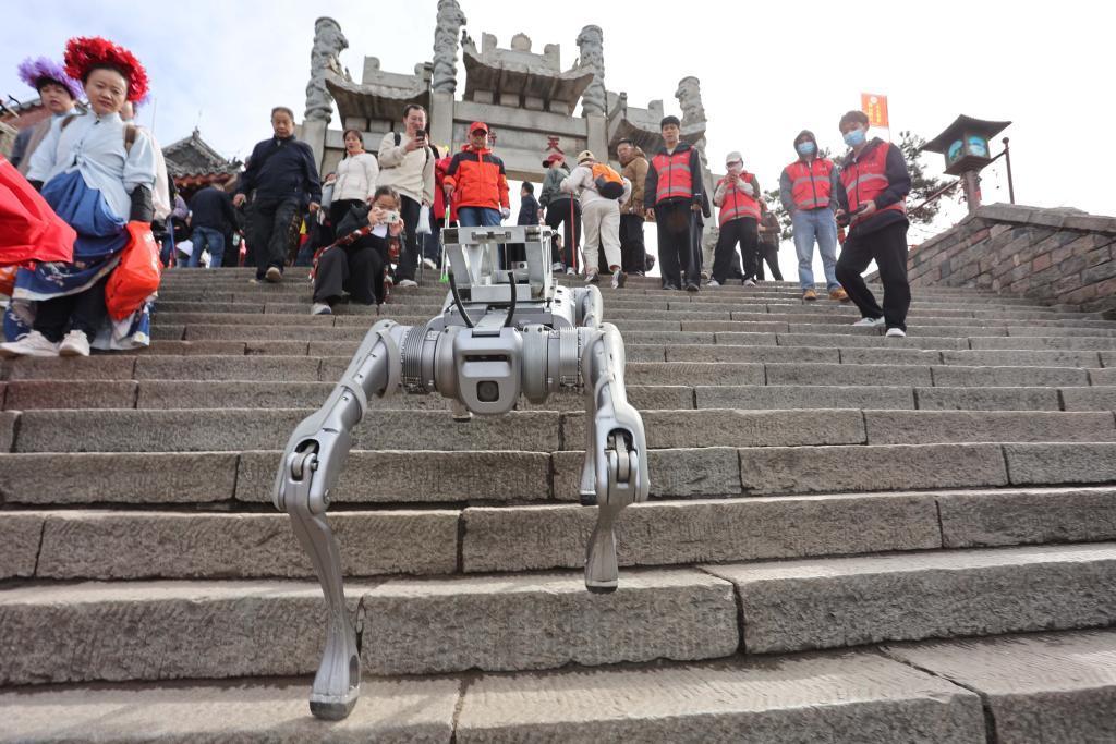業(yè)內(nèi)人士指出,機(jī)器狗的出現(xiàn)不僅為泰山垃圾清運(yùn)提供了新的思路,也為這座世界名山增添了新的魅力。 “現(xiàn)代科技與泰山的古老文化相互交融,形成了一種獨(dú)特的景觀,不僅為泰山的旅游發(fā)展帶來了新的機(jī)遇,也為泰山文化的傳承和創(chuàng)新提供了新的思路。”山東大學(xué)教授王忠武說。(來源:新華社 記者 孫曉輝)