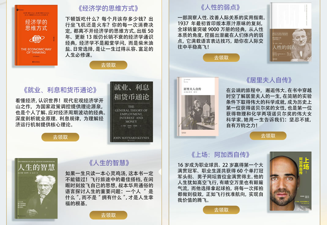 華為閱讀與國航共同精選了適合旅途閱讀的“國航伴讀書單”,包括《經(jīng)濟(jì)學(xué)的思維方式》、《就業(yè)、利息和貨幣通論》、《人生的智慧》、《人性的弱點》、《居里夫人自傳》、《上場:阿加西自傳》等好評付費書籍,并提供給國航用戶免費閱讀,為乘客的飛行時光帶來更多精神享受。