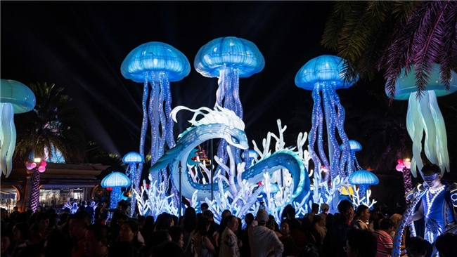 2025年1月29日,大年初一,乙巳蛇年,復(fù)星旅文·三亞亞特蘭蒂斯舉辦的以“龍蛇換守 七子賀歲”為主題的燈會嘉年華憑借多元化的創(chuàng)新夜間消費場景,持續(xù)吸引游客,推動消費熱潮。這場活動融合傳統(tǒng)與現(xiàn)代、藝術(shù)與科技,為游客帶來沉浸式的夜間文旅體驗,成為海南夜經(jīng)濟的新亮點。