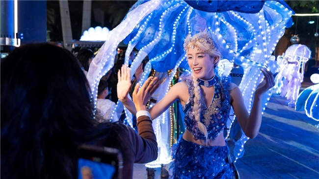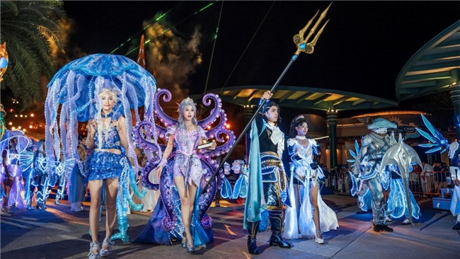 在本次活動中,特別設(shè)置的NPC(非玩家角色)演藝巡游活動成為一大亮點。亞特蘭蒂斯原創(chuàng)NPC“海洋七子”驚艷出場,包括擁有無限力量、守護(hù)光明正義的阿特拉斯王子,用優(yōu)雅的歌聲喚醒深海綺夢的人魚星娜,預(yù)言洞悉萬物、感知生命力量的章魚菲婭,智慧引領(lǐng)科技、把握未來方向的海龜拉斐爾,勇敢成為利刃、開啟榮耀之路的鯊魚坦克,在美麗的星光下閃耀夢幻光芒的水母歐若拉,以及愛能穿梭角落、點亮浩瀚海洋的海馬維納斯。演員們身著奇幻服飾,化身這些海洋生物形象,在園區(qū)內(nèi)巡游展演,與游客近距離互動,創(chuàng)造了難忘的度假記憶。