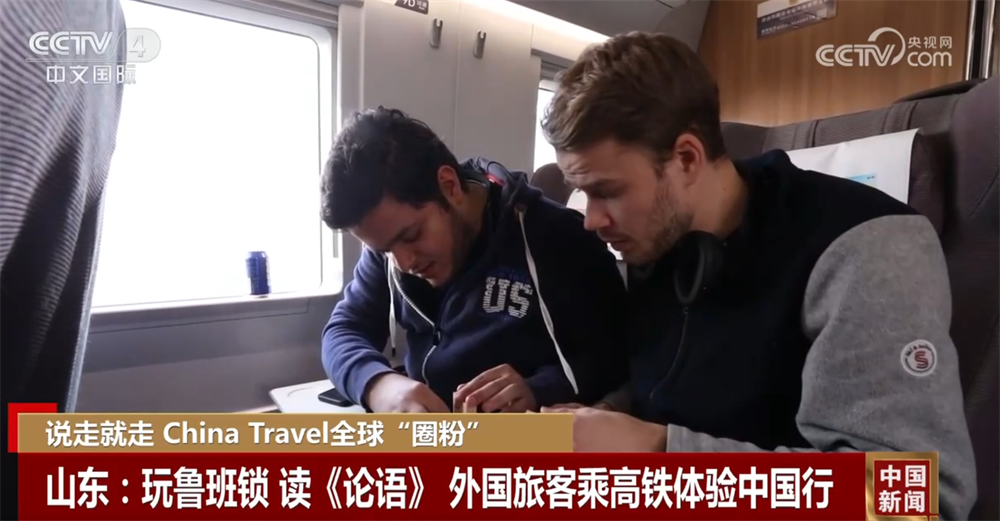 隨著過境免簽外國人在境停留時間延長為240小時等政策的實施,便捷的中國高鐵也成為了越來越多外國游客游覽中國的一種選擇。在青島開往濟南東方向的G6910次列車上,來自挪威的旅客哈蘭正興趣盎然地和來自埃及、同樣喜歡中國傳統(tǒng)建筑榫卯結構的同伴易卜拉欣一起研究魯班鎖的玩法。
