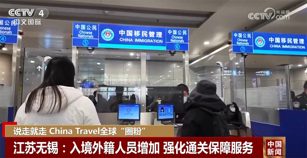 隨著外國人使用過境免簽新政入境人數(shù)的增加,為更好服務外籍人員,無錫公安出入境管理部門提前制定預案,全力做好通關保障服務。(來源:央視網(wǎng))