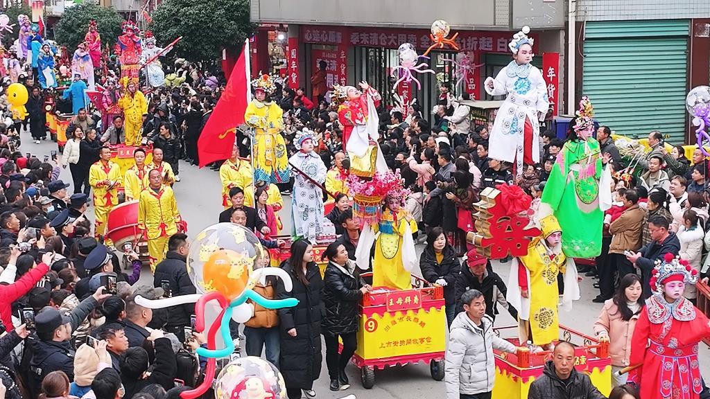 湖南省汨羅市長(zhǎng)樂(lè)鎮(zhèn)“長(zhǎng)樂(lè)抬閣故事會(huì)”民俗活動(dòng)現(xiàn)場(chǎng)。(胡清 攝)
