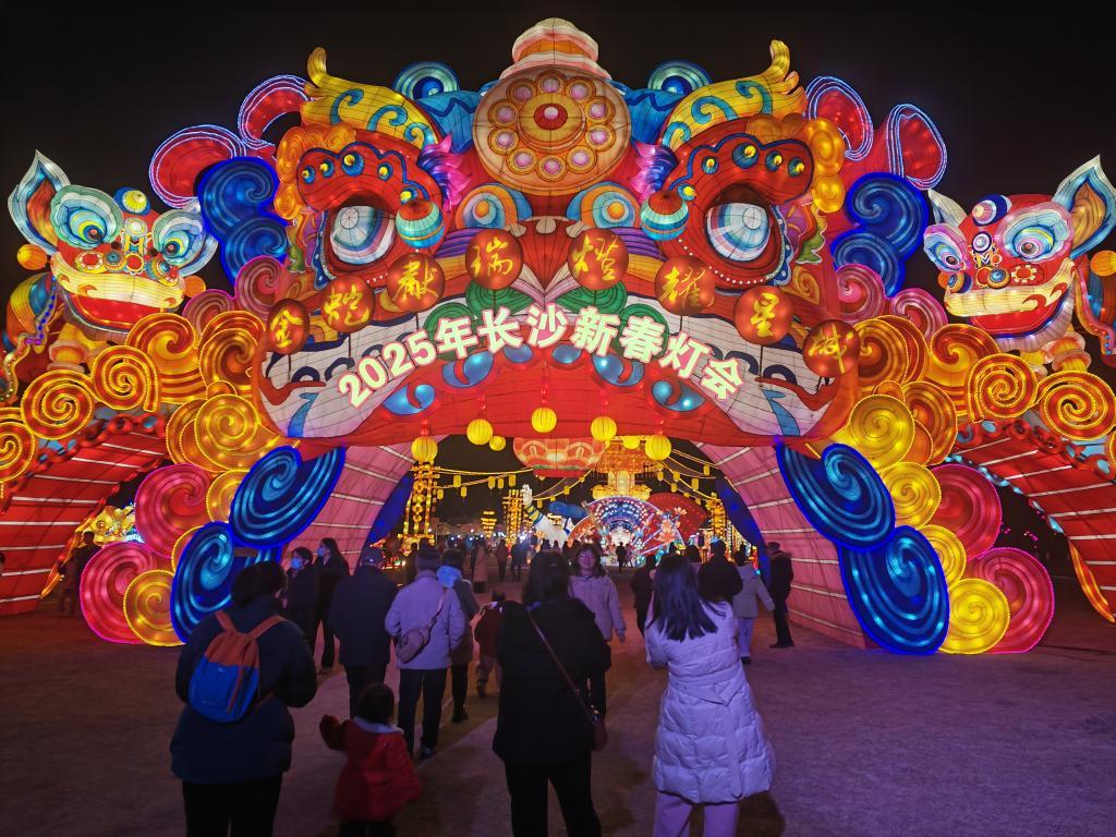 這是在華誼兄弟(長(zhǎng)沙)電影小鎮(zhèn)舉辦的2025年長(zhǎng)沙新春燈會(huì)現(xiàn)場(chǎng)。新華社記者白田田 攝