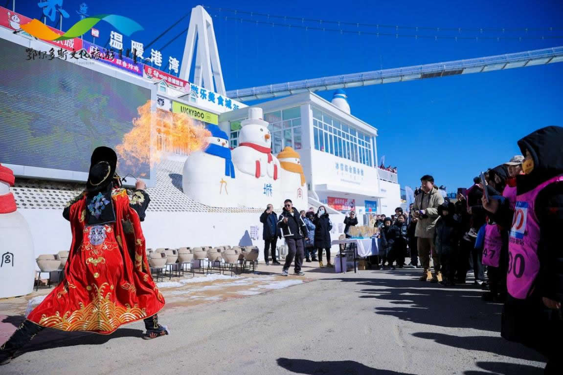 品美食、觀演藝、玩旅拍、住民宿、看比賽,本次“跟著賽事去旅行”2025暖城鄂爾多斯冰雪嘉年華內(nèi)容精彩紛呈,充分彰顯了文旅體融合發(fā)展的新魅力。在特色文藝展演中,鄂爾多斯歌舞熱情奔放,盡顯特色民俗風(fēng)情;IP動漫互動巡游,讓孩子們歡笑不斷;非遺傳人的現(xiàn)場展示,激起大家對傳統(tǒng)文化的美好傳承與向往;國潮達人旅拍,為游客留下最美的瞬間;還有九城宮老口味富貴饸饹面、銅鍋涮肉等美食應(yīng)有盡有。在住宿方面,為選手和游客精心準(zhǔn)備了陜北特色的窯洞,體驗民俗風(fēng)情;比賽之余,深入響沙灣等景區(qū),深度體驗暖城的獨特魅力。