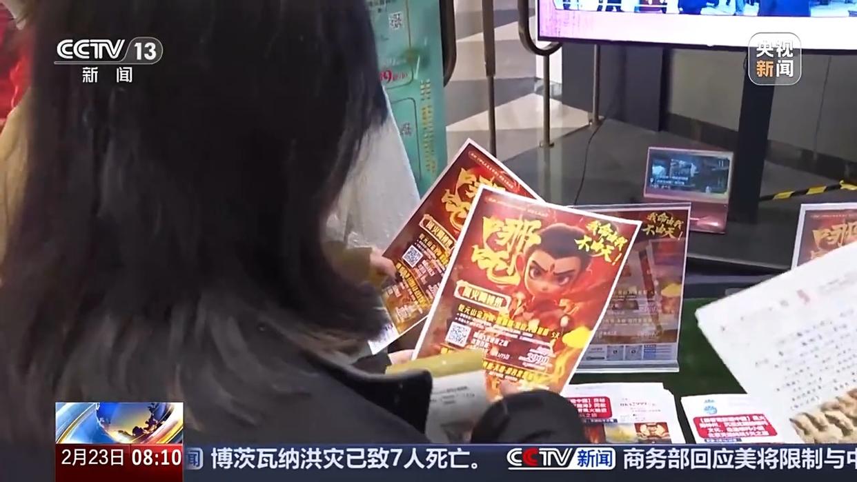 在澳門(mén)英皇戲院,很多剛剛看完《哪吒2》的觀眾第一時(shí)間就來(lái)到“跟著電影去旅游”展臺(tái)前咨詢(xún)。