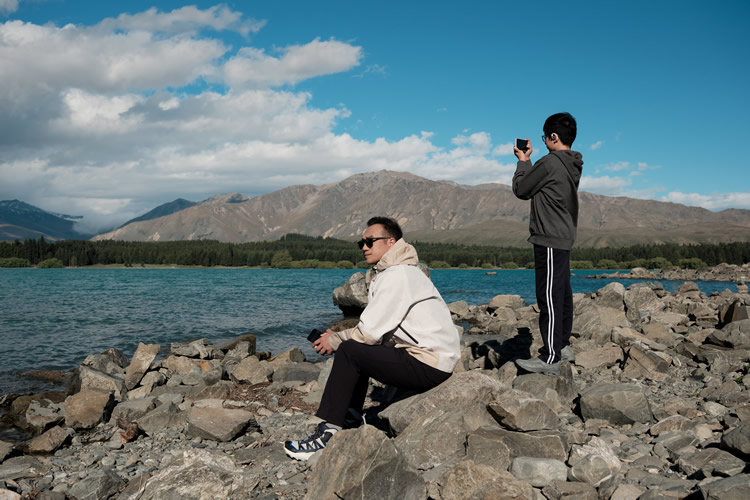 此次旅程也是黃覺(jué)與兒子核桃的首次單獨(dú)旅行。在新西蘭,黃覺(jué)父子倆共同體驗(yàn)了這片土地的多面魅力。他們身處蒂卡普湖畔的星空下,仰望南半球璀璨的銀河,感受宇宙的浩瀚;乘坐基督城的復(fù)古電車(chē),穿梭于這座充滿(mǎn)歷史感的城市,一邊欣賞街景,一邊聆聽(tīng)向?qū)еv述基督城的故事,體驗(yàn)這座城市的復(fù)蘇與活力;搭乘高山觀景火車(chē),從基督城出發(fā),穿越南阿爾卑斯山脈,沿途經(jīng)過(guò)雪山、峽谷和森林,靜靜欣賞車(chē)窗外的絕美景色,享受這段寧?kù)o的旅程;在電影《指環(huán)王》的取景地霍比屯,他們俯身邁入霍比特人的小屋,仿佛置身于電影中的魔幻世界。