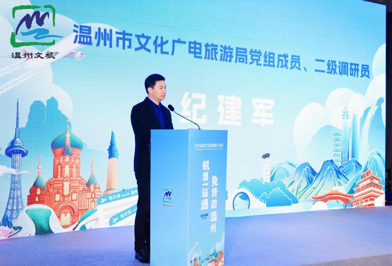 溫州市文化廣電旅游局黨組成員、二級調(diào)研員紀建軍在致辭中強調(diào),溫州作為中國山水詩發(fā)祥地,近年來圍繞“國際化休閑旅游度假城市”目標,打造了雁蕩山、楠溪江、百島洞頭等標志性景區(qū),并通過沉浸式戲曲、夜間消費集聚區(qū)等新業(yè)態(tài)激活文旅市場。他特別提到溫州“六個最”——好景、好味、好戲、好夜、好禮、好情,邀請哈爾濱游客感受甌越文化的獨特魅力。