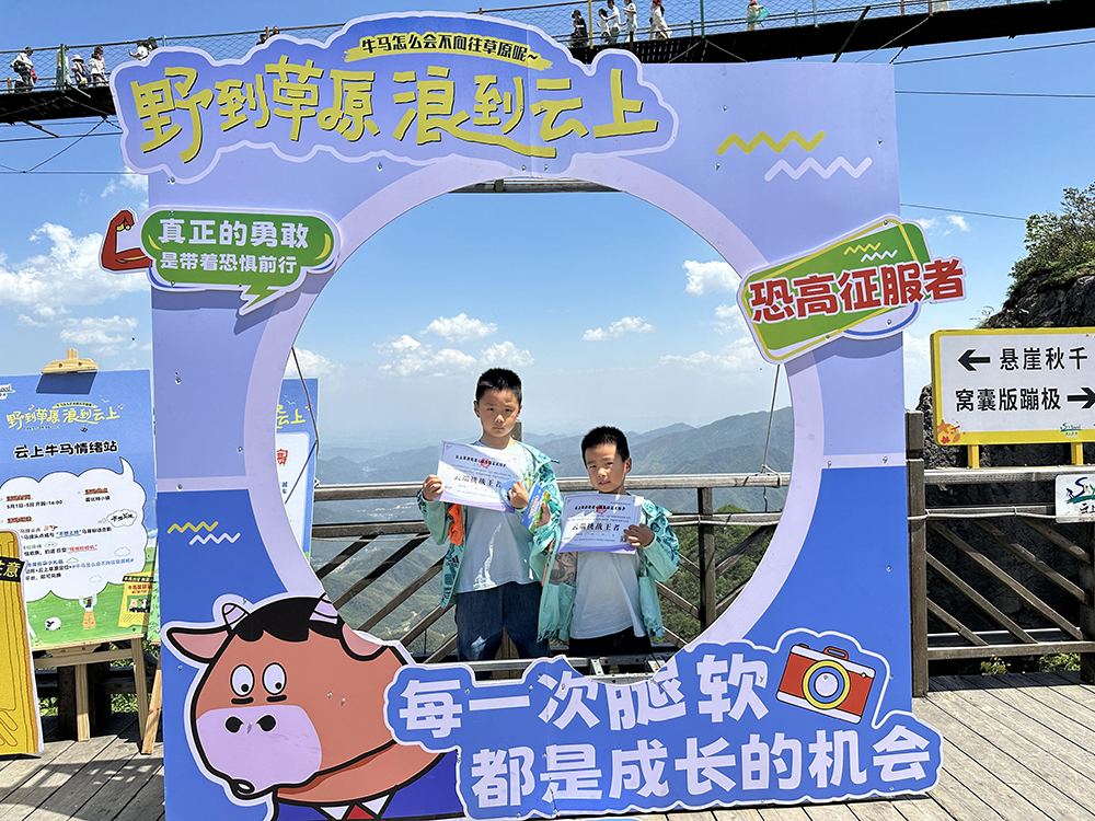 懸崖秋千、窩囊蹦極、飛拉達(dá)·懸崖穿越等六大極限項(xiàng)目挑戰(zhàn)賽正如火如荼進(jìn)行中。不少游客在“步步驚心”高空索道上顫抖前行,卻仍高舉手機(jī)記錄驚險瞬間。完成挑戰(zhàn)者可現(xiàn)場領(lǐng)取“勇氣證書”。