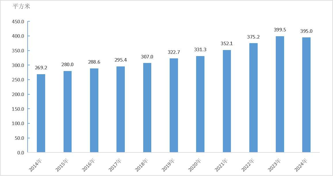 圖3:2014-2024年全國(guó)平均每萬(wàn)人群眾文化設(shè)施建筑面積