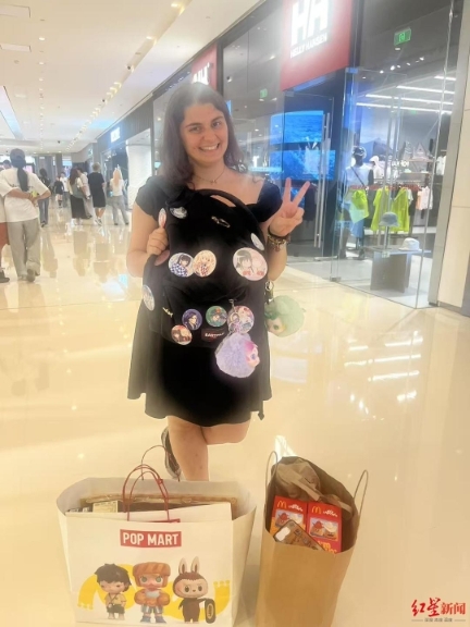 同樣來成都玩的,還有27歲的意大利女孩瑪?shù)倌龋∕artina)。6月25日下午,瑪?shù)倌日诔啥嫉囊患遗菖莠斕氐赀x購?吹搅宅槤M目的潮流玩具,瑪?shù)倌纫贿M去就是半小時以上,足足選了一大袋才出來,“在意大利,泡泡瑪特的店鋪不多,商品品種也沒有這么齊全。”