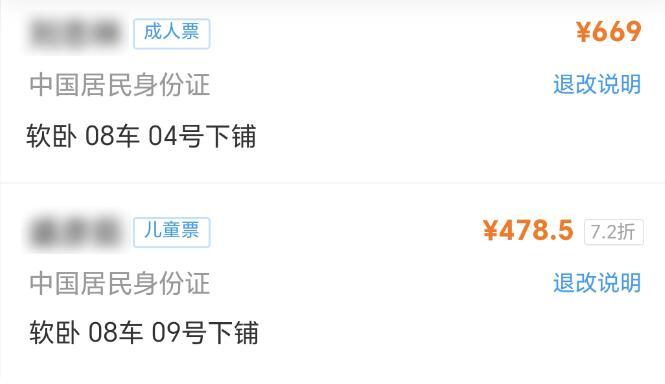 兒童優(yōu)惠票軟臥票價=軟座票價×50%+臥鋪票價(軟)×100%