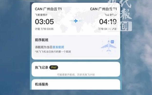 民航業(yè)內(nèi)人士表示:其實經(jīng)常有這種試飛航班。不過近期有臺風(fēng)來臨,7月19日白云機場天氣不佳,平臺“賞月航班”的信息標(biāo)注有點奇怪。