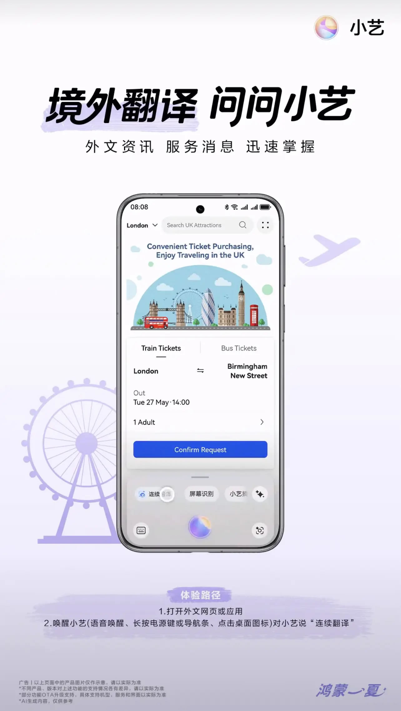 今年暑期,“鴻蒙一夏”系列活動開啟,全方位為用戶出境游助力。用戶可以在華為瀏覽器找到出行靈感敲定心動目的地,用華為天際通9.9元全球流量隨心用解決流量煩惱,用花瓣地圖打卡當(dāng)?shù)靥厣有秘密武器小藝翻譯助用戶打破語言壁壘,一站式解決出境游核心痛點(diǎn),時刻暢享絲滑旅途。
