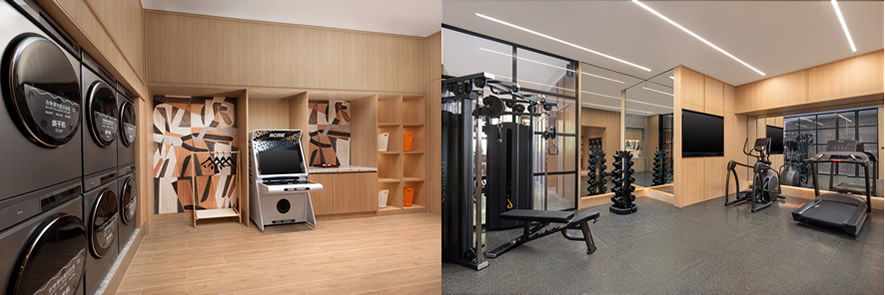 暢享“智慧”家居也是Atwell筑格酒店的重要特色之一。酒店配備全屋智能操控系統(tǒng),支持語音控制與一鍵客服,賓客可輕松調節(jié)溫度與燈光,使用智能家電,并配備隨心調節(jié)高低的升降桌以滿足不同場景需求。浴室設有熱毛巾架,電視支持智能投屏,賓客可獲得更順暢的居停體驗。酒店還設有“洗躍”健身洗衣空間,配有座位、游戲機等設施,打造具備洗衣和健身功能的社交休閑區(qū),讓入住體驗更加豐富自在。