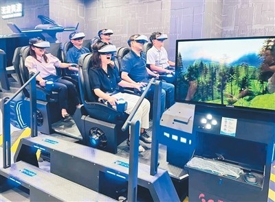 體驗館里,游客體驗《元創(chuàng)芷江》裸眼3D,重回1938年,身臨其境地看到1.9萬余名民工修筑二戰(zhàn)時期盟軍遠東第二機場——芷江機場的場景。近年來,紀念館不斷創(chuàng)新展陳方式,推出和平藝術(shù)中心“元宇宙”科技體驗館,以數(shù)字化“元宇宙”科技融合手段,打造愛國主義教育研學品牌,提升研學游附加值。體驗館分為14個體驗區(qū)域,運用VR、AR、3D裸眼等沉浸式技術(shù),為游客提供高度虛擬化沉浸式的芷江抗戰(zhàn)歷史故事體驗。