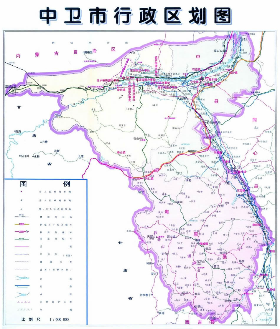 2004年,設(shè)立地級(jí)中衛(wèi)市,轄沙坡頭區(qū)(原中衛(wèi)縣)、中寧縣、海原縣。