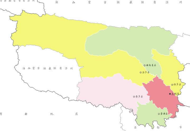 玉樹藏族自治州轄1個(gè)縣級(jí)市、5個(gè)縣: