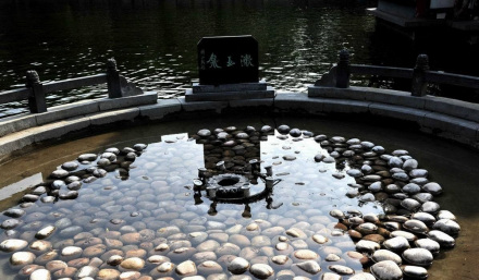 位于百脈泉公園清照?qǐng)@內(nèi),泉池圓形,直徑3米,深0.5米,形若圓盤,泉中池底鋪鵝卵石,泉噴水花色白如玉,噴高可達(dá)數(shù)尺,水落池中如玉石片片,碧水洗白玉,浩純無暇故名白玉泉(漱玉泉),更與墨泉遙相呼應(yīng),一黑一白,一暗一明,共匯繡江。給李清照故里增添了一幅秀麗的畫卷。仰首西望,易安樓琴聲陣陣,海棠軒茗香輕飄,黃花館書畫琳瑯,金石苑古色古香。泉水風(fēng)貌,文化品味融為一體,給清照?qǐng)@增添了耀眼的光彩。