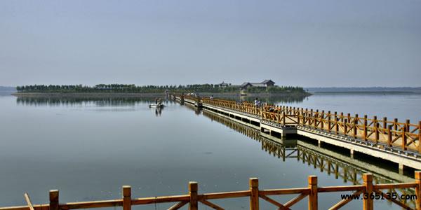 浮龍湖:位于單縣的西南部,距單縣城15公里,它南依凹凸不平的黃河故道,北接一望無際的平原,F(xiàn)屬單縣浮崗鎮(zhèn)管轄。由浮龍湖和月牙潭兩部分組成。浮龍湖呈東西狹長形狀,東西長約1⒉5公里,南北寬⒉5公里,面積3⒈26平方公里,水深約⒊5-5米,月牙潭呈狹長形狀,面積約5平方公里。浮龍湖和月牙潭水面積約 3⒍26公里,占浮崗鎮(zhèn)總面積的 2⒌18%。水質(zhì)純凈無任何污染。有閆潭灌區(qū)南引黃干線,小浪底焦莊水閘兩條送水途徑,長年可保持一定的蓄水量。據(jù)有關(guān)史料記載浮龍湖成型于明朝嘉靖年間的黃河決口,黃河在此決口一瀉千里,沖積成兩個大洼地,隨著黃河的改道和地質(zhì)地貌變動,形成兩個相對獨(dú)立的封閉的大潭坑,在當(dāng)?shù)亓鱾髦犊由畈灰姷字蓖|海龍宮,每逢農(nóng)歷2月22日龍?zhí)ь^時,龍王派其四子來此處察看民情的傳說。