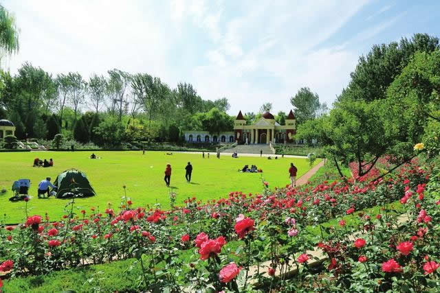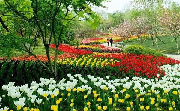 彩色植物園位于公園東南側(cè),面積約3.1公頃,集中展示隨季節(jié)變化而呈現(xiàn)不同色彩的觀花、觀葉、觀果類植物50余種,以色葉樹種五角楓、櫸樹、銀杏、黃櫨、紅楓、紫葉矮櫻等植物為主體,配置以色彩鮮艷亮麗的時(shí)令花卉,如郁金香、波斯菊、硫華菊、百日草等,也有“活化石”水杉、銀杏等植物。