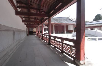 大成殿東西兩側(cè)的房子叫“兩廡”,是后世供奉先賢 先儒的地方這配享的賢儒大都是后世儒家學(xué)派中著名的人物,如董仲舒、韓愈、王陽明等。在唐朝僅有20余人,經(jīng)過歷代增添更換,到民國時,多達156人。這些配享的人原為畫像,金代改為塑像,明成化年間一律改為寫有名字的木制牌位,供奉在一座座的神龕中。現(xiàn)在兩廡中陳列著歷代石刻。